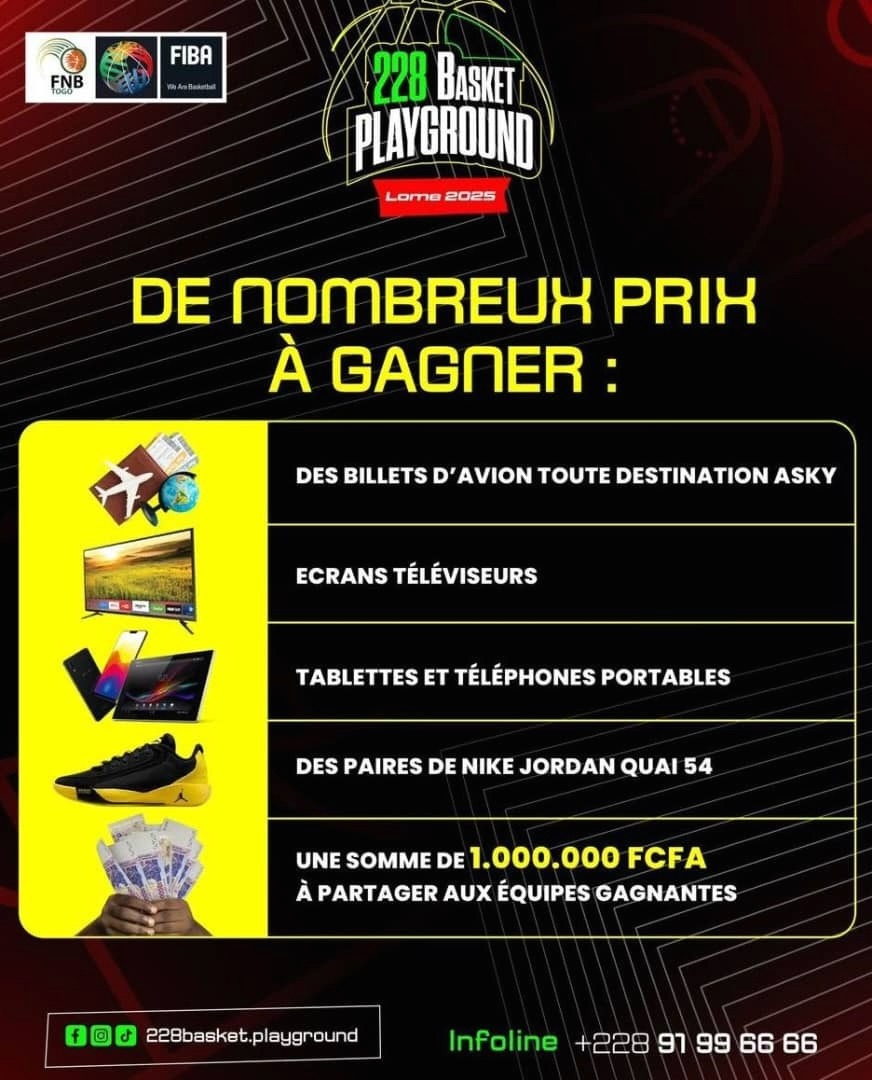 La Fédération Nationale de Basket-ball du Togo (FNB-Togo), organise les 12 et 13 septembre 2025 un grand rendez-vous sportif baptisé « 228 Basketball Playground » pour clore la saison sportive 2024-2025.