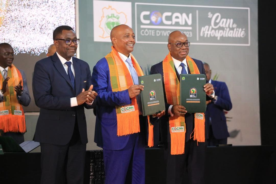 La cérémonie de signature s’est déroulée entre le président de la CAF, Patrice Motsepe, et le Premier ministre ivoirien, Patrick Achi, en présence du président de la Fédération ivoirienne de football (FIF), Yacine Idriss Diallo, de celui du COCAN 2023, Albert François Amichia, et du ministre des Sports, Paulin Claude Danho.