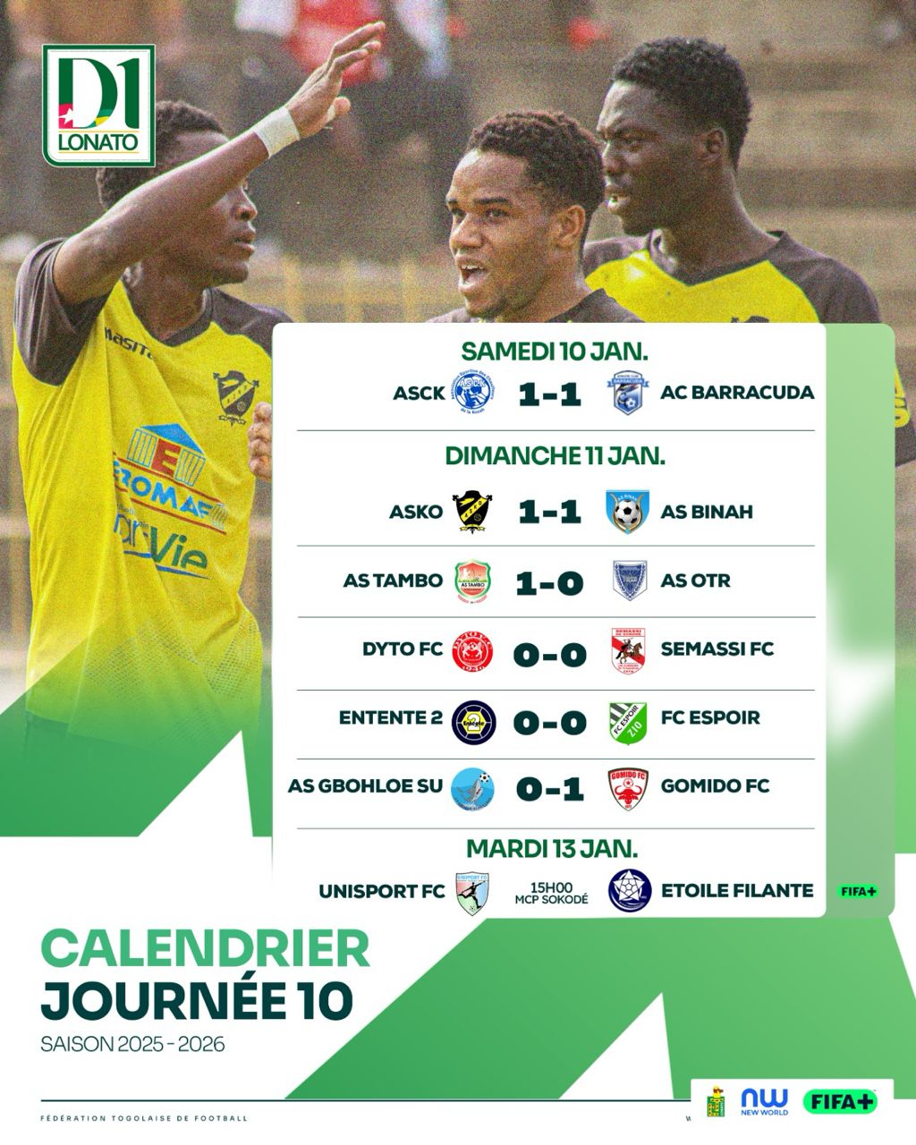 La 10ᵉ journée de la D1 Lonato s’est poursuivie ce week-end avec plusieurs rencontres disputées sur les terrains du Togo, offrant du suspense et des rebondissements aux passionnés de football.