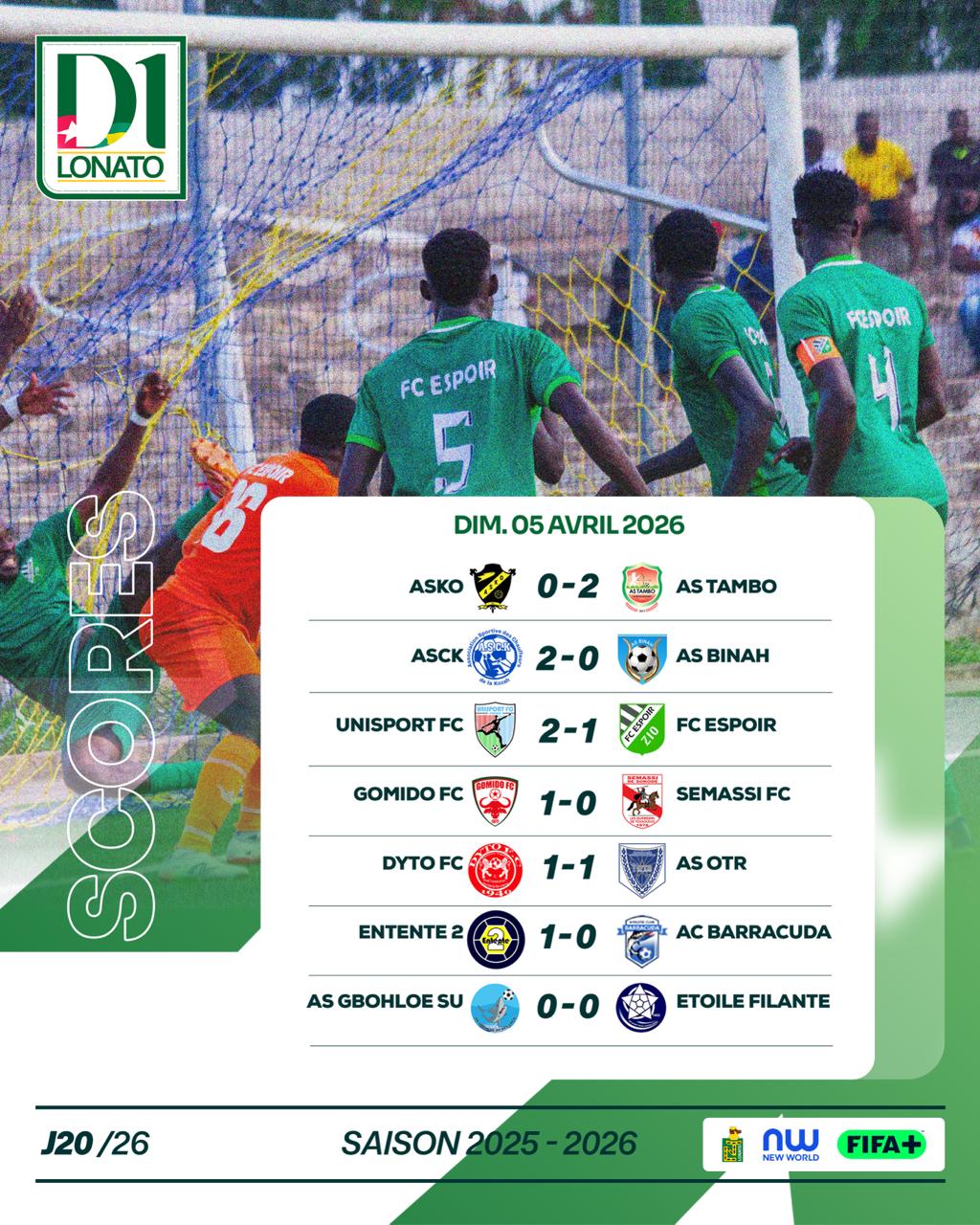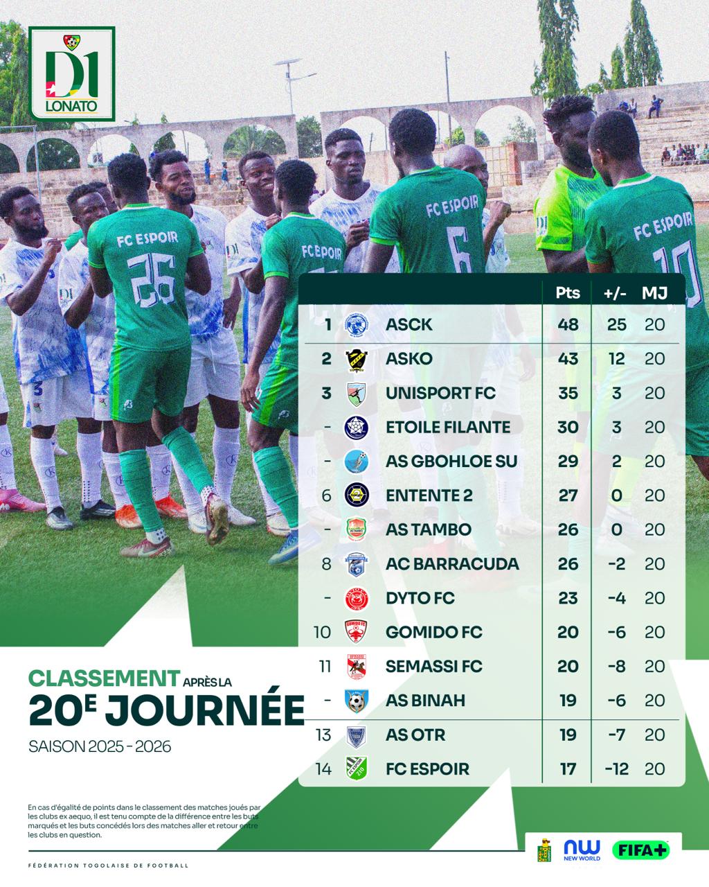 La 20e journée de la D1 Lonato s’est disputée ce week-end sur l’ensemble du territoire national, offrant aux amoureux du football togolais des rencontres riches en suspense, entre confirmations des favoris et surprises au classement.