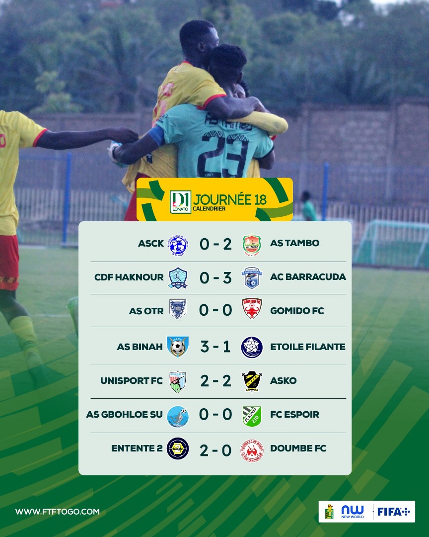 Tambo s’offre une bouffée d’oxygène grâce à une victoire précieuse face à l’ASCK, lui permettant de remonter à la 9ᵉ place (23 points), tandis que Gomido se maintient à la 10ᵉ position (22 points).