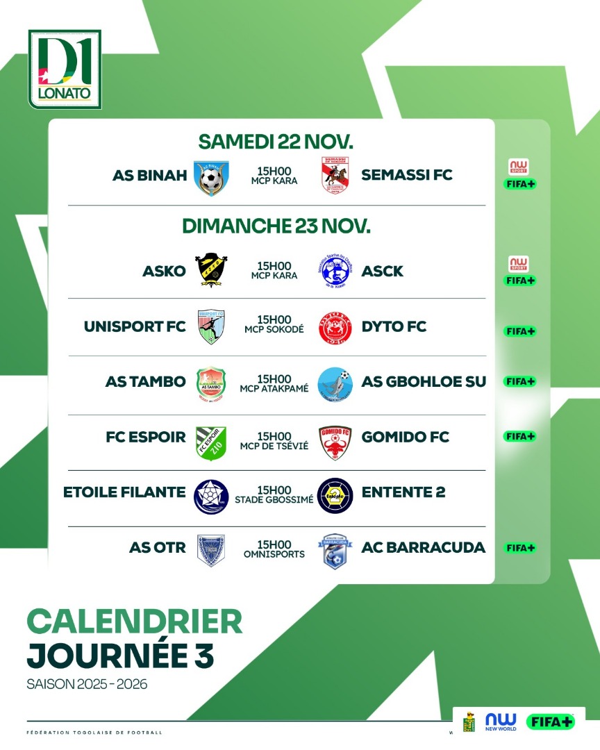 AS Binah vs Sémassi FC (15h00) – Stade Municipal de Kara.