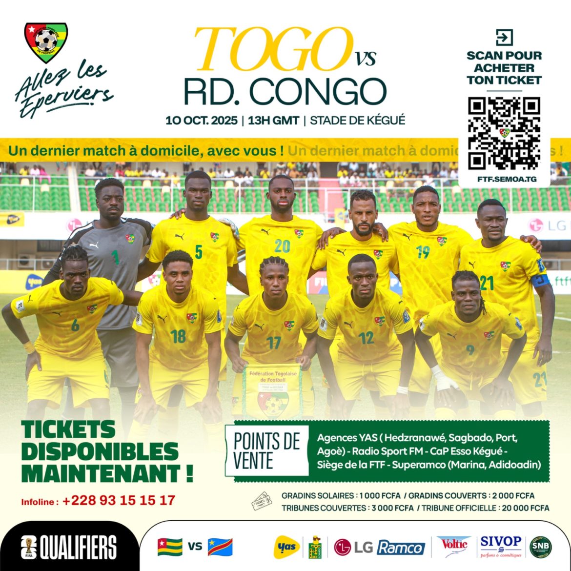 Pour rappel le Togo joue son premier match face au RD Congo ce 10 Octobre à lomé avant de rejoindre Juba pour y défier le Soudan du Sud.