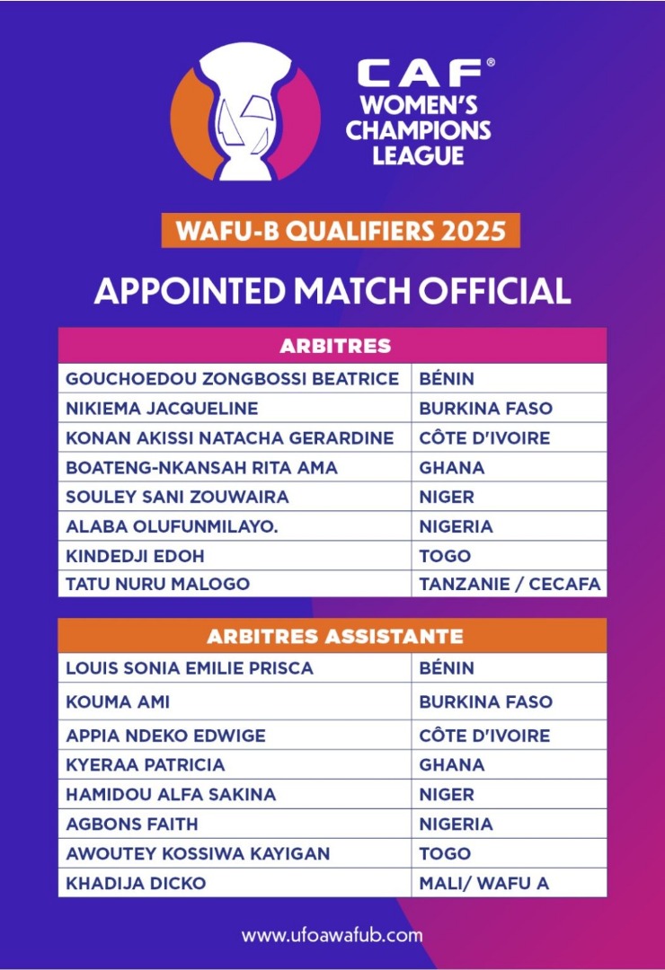 Elim LDC (F) 2025/UFOA-B : Deux arbitres togolaises sollicitées