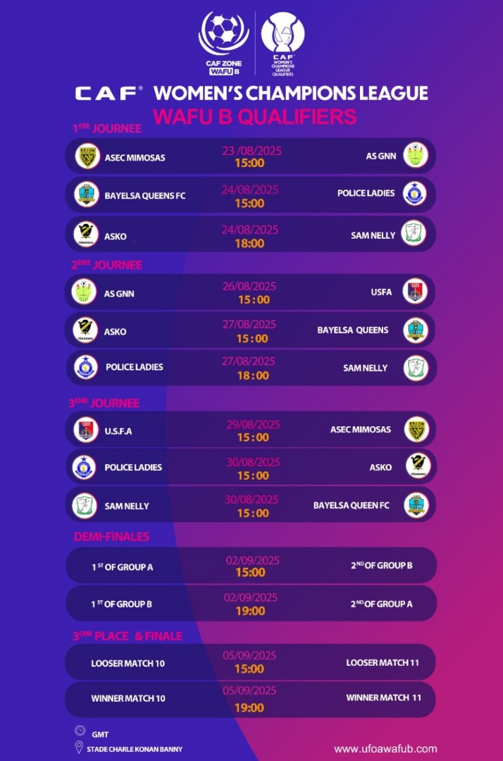 Logées dans le groupe B, elles affronteront Sam Nelly du Bénin le 24 août, Bayelsa QFC du Nigeria le 27 août et enfin Police Ladies du Ghana le 30 août lors de la phase de groupes.