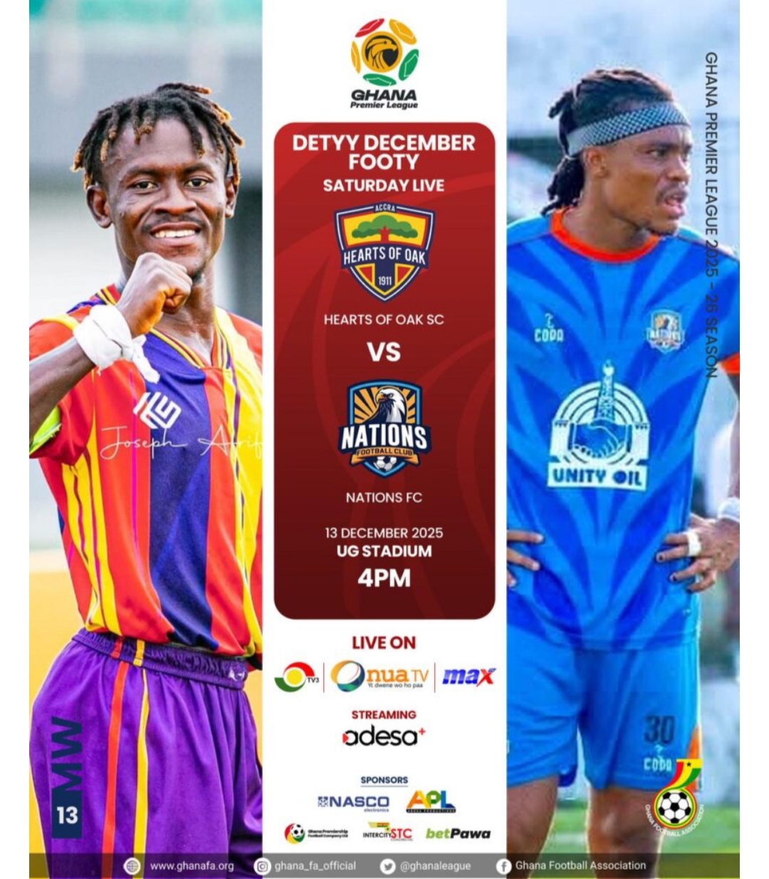 Hearts of Oak accueillera Nations FC ce samedi 13 décembre 2025 au stade de l’Université du Ghana, avec l’ambition de mettre fin à sa série noire sans victoire. Les Phobiens restent sur quatre matchs sans victoire et cette série les a fait chuter à la 7e place avec 21 points après 13 journées.