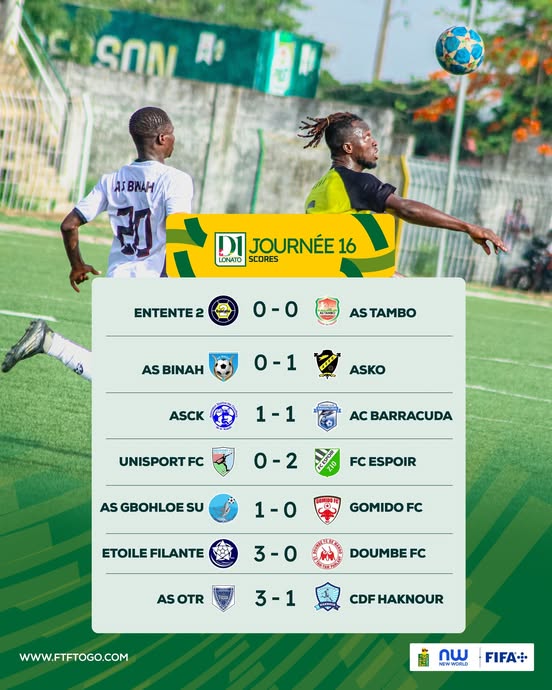 Gbohloe-Su complète le podium avec 26 points, suivi de près par Unisport et l’ASCK, qui totalisent tous deux 25 points.