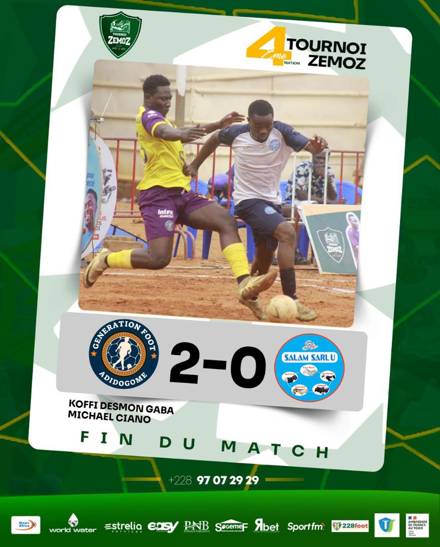 En ouverture, Génération Foot s’est imposé 2-0 face à Salam grâce à des réalisations signées Michael Ciano et Desmond Gaba. Dominateurs dans le jeu, les jeunes de Génération ont maîtrisé leur sujet et décrochent ainsi leur billet pour les demi-finales.