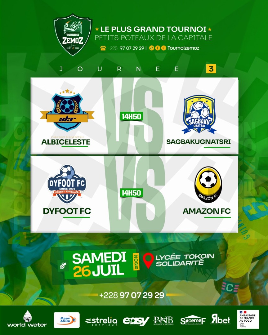 Ce samedi 26 juillet 2025, le Lycée Tokoin Solidarité accueillera deux affiches déterminantes pour la suite de la compétition.Après deux journées, le suspense reste entier.