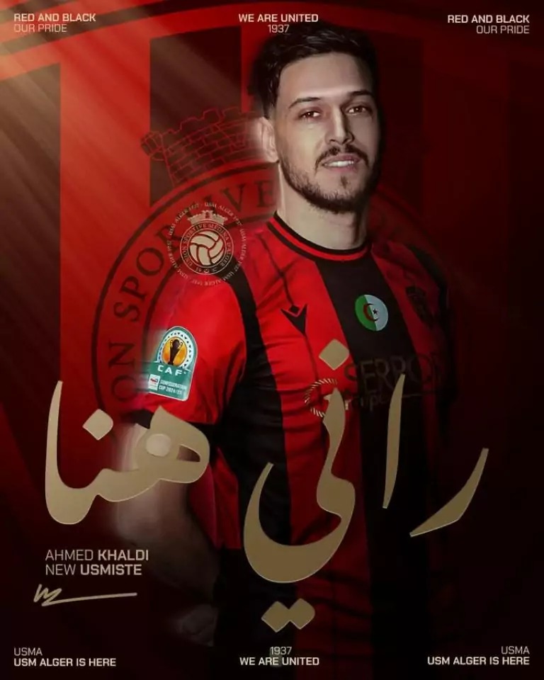 »Ahmed Khaldi rejoint notre club jusqu’en juin 2027, en provenance d’Al-Arabi du Koweït. Khaldi a rejoint notre équipe en transfert gratuit après avoir résilié son contrat et obtenu ses documents auprès du club Koweïtien Al-Arabi » a communiqué l’USM Alger.
